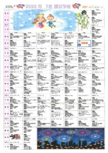 ・7月のレクリエーションカレンダーと献立表です。