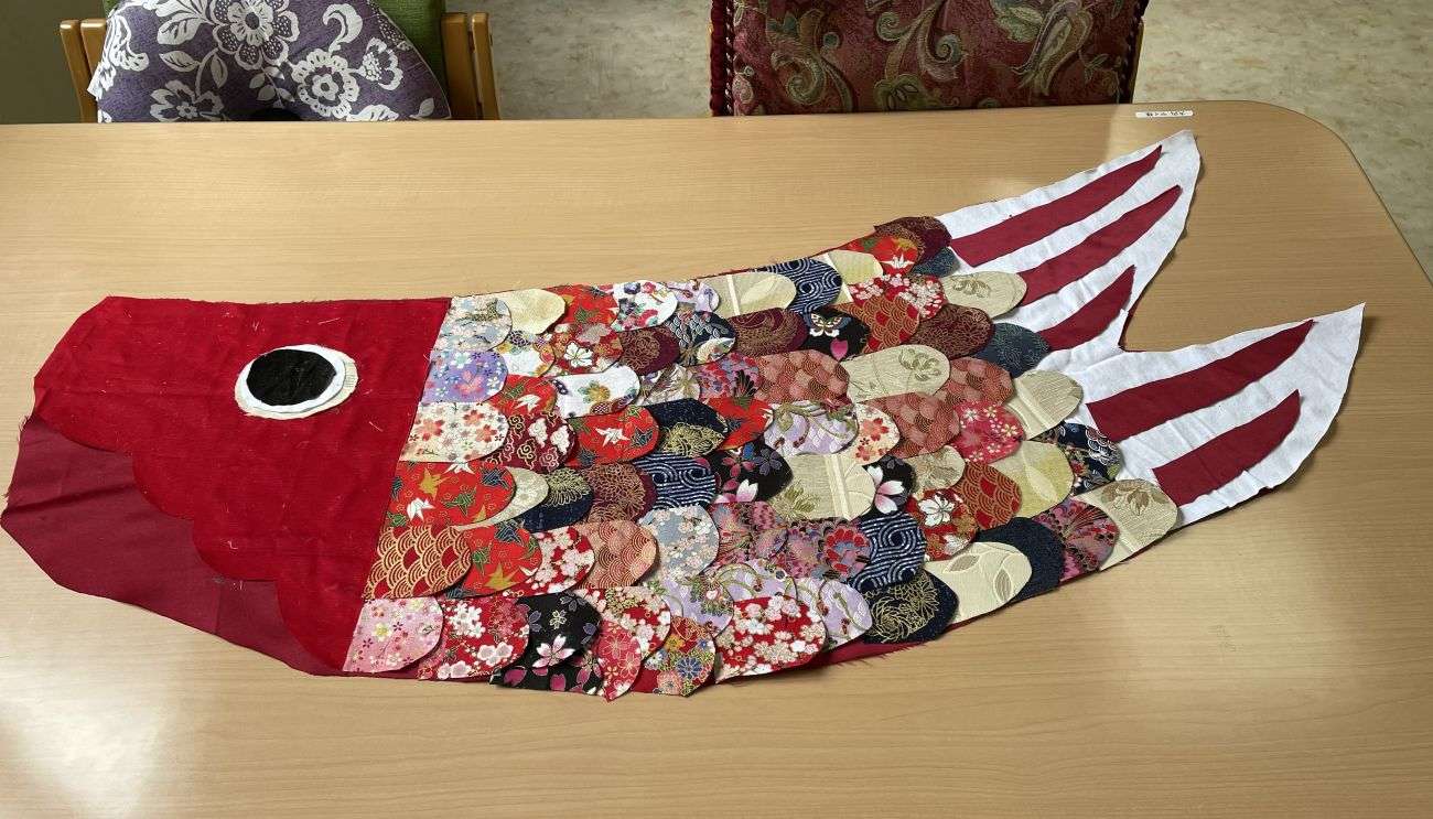 大きいこいのぼりは、テーブルいっぱいに広がるほどの大きさとなり、