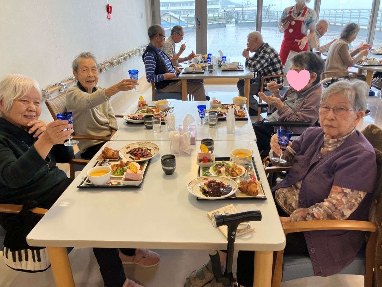 クリスマスのランチは皆さんグラスを持ってシャンパン(サイダー)でカンパーイ🥂