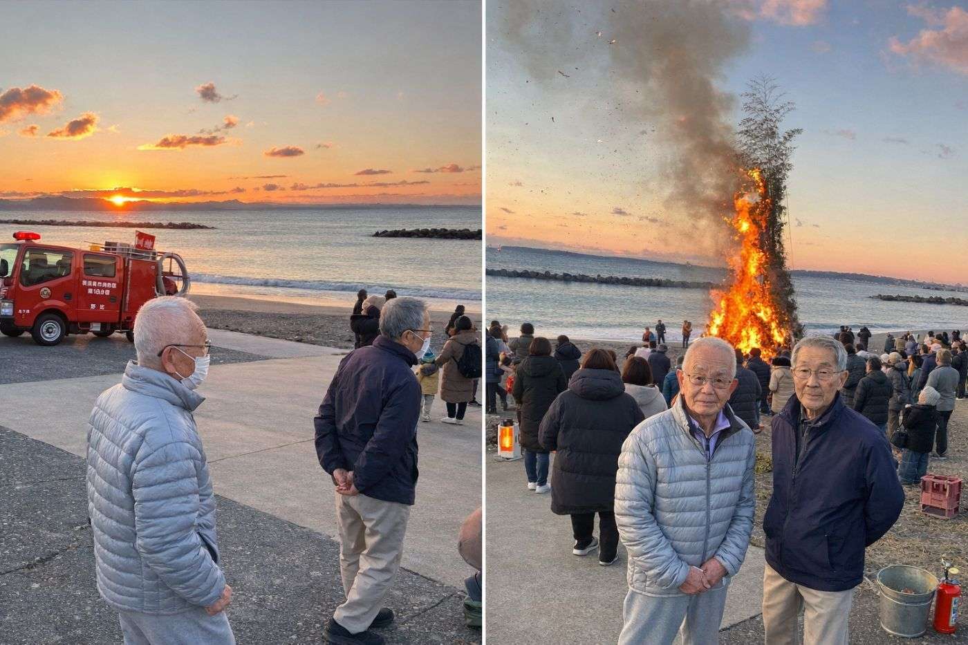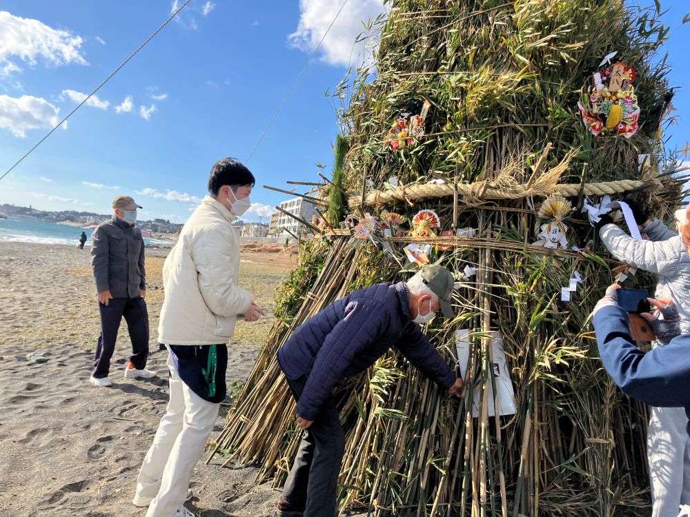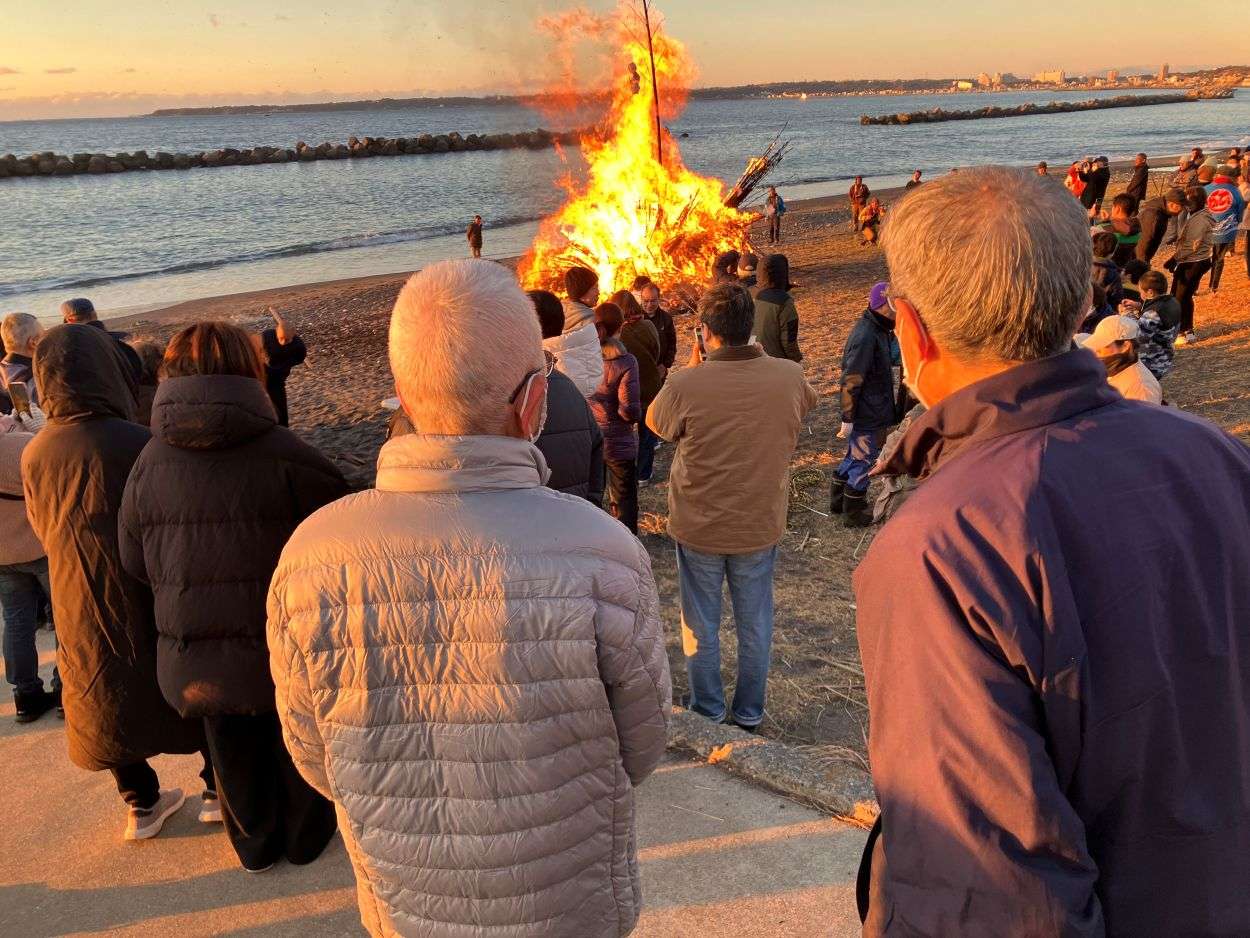 1月12日の早朝、野比海岸で恒例のおんべ焼きが行われました。