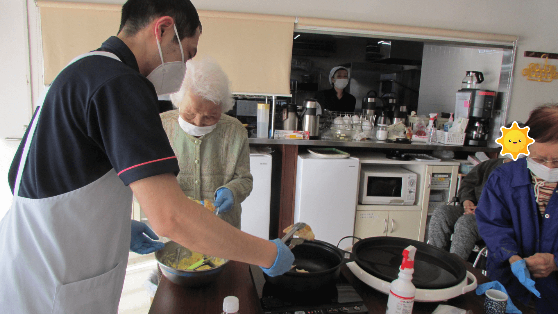 完成したアップルパイを召し上がった入居者様からは、笑顔が溢れておりました😋