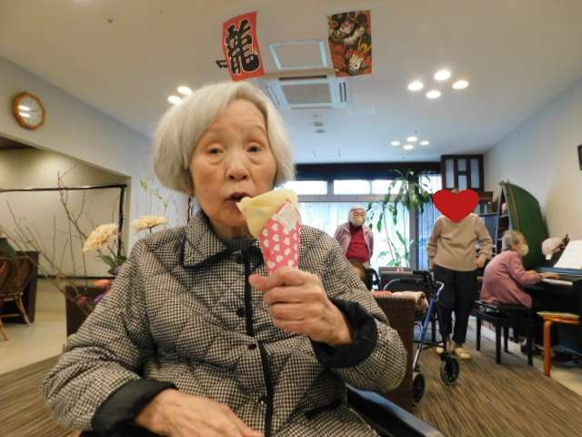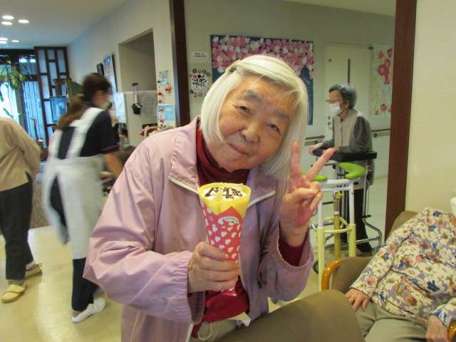 午後のおやつの時間に、入居者様にも購入していただきます(∩´∀`)∩
